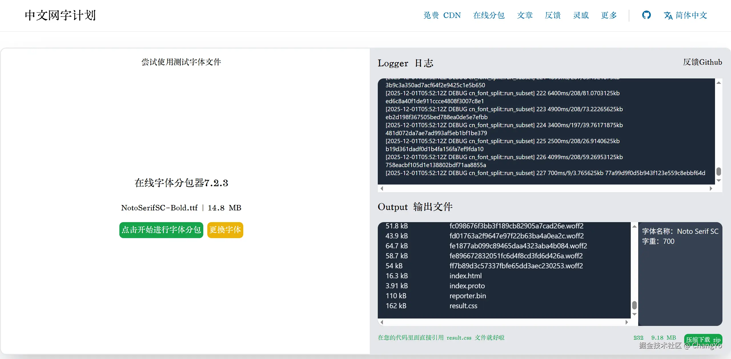 但是我们需要本地部署的话,需要多费一点功夫。这里我们利用中文网字计划的在线分包网站来实现。