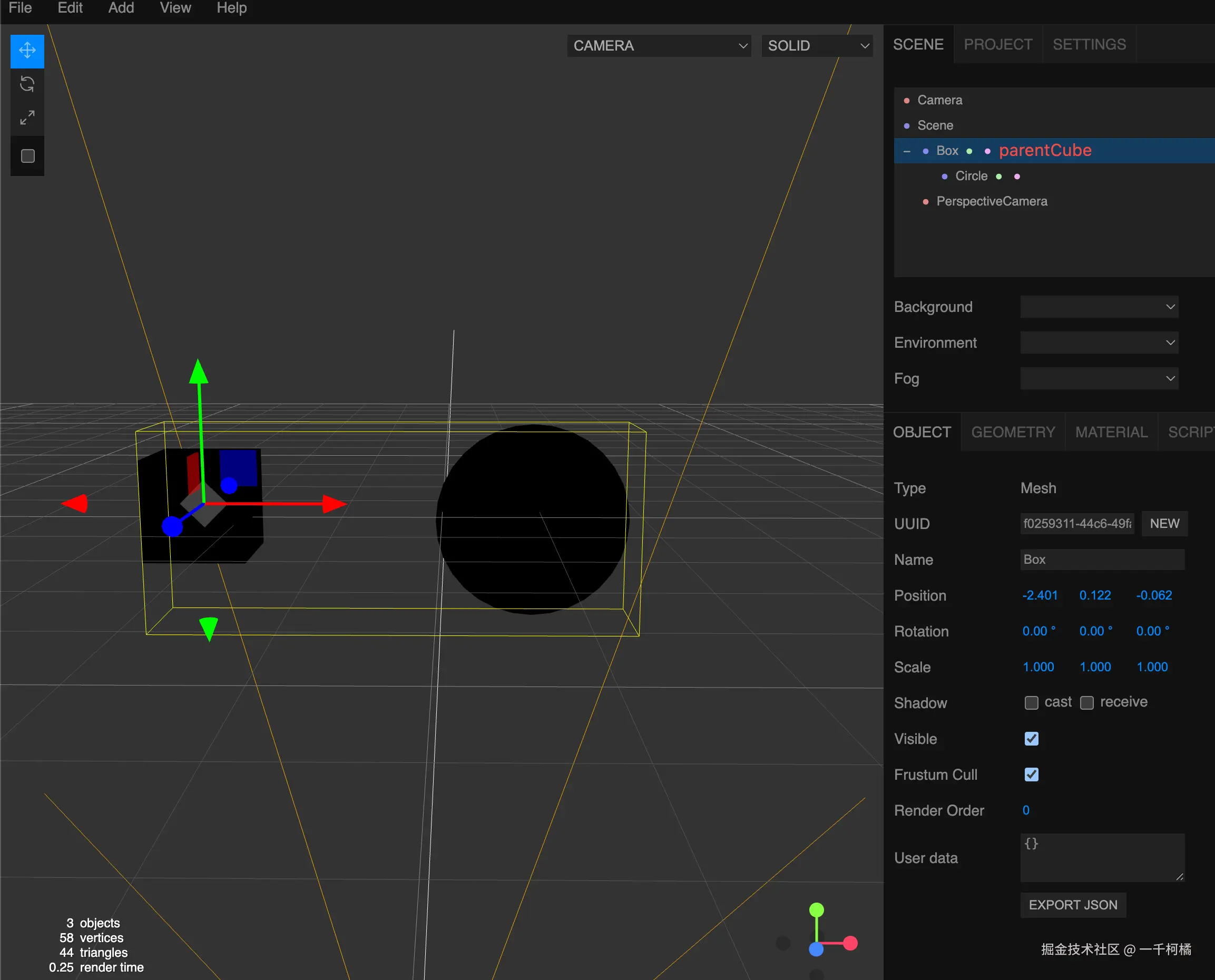 scene.add(parentCube);