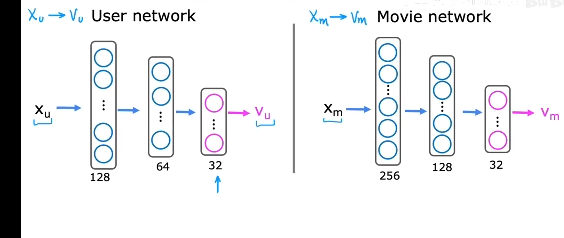 向量从哪来?利用神经网络,对用户和物品的特征进行拟合,生成两个相同大小的向量,如下图输出层为32神经元,表示有32维的向量输出。