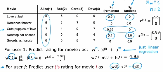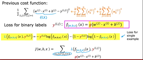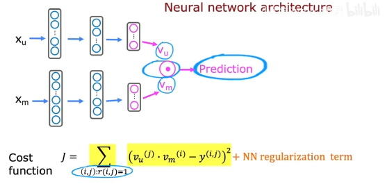 第二个代价函数正则化x,是为训练x,就是已知一些用户的w,b参数,训练电影的特征,然后根据特征进行推荐。