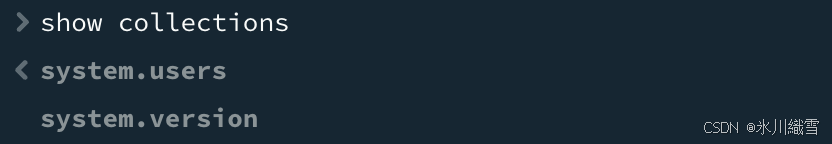 创建完成后,输入 show collections 查看 admin 数据库有哪些集合: