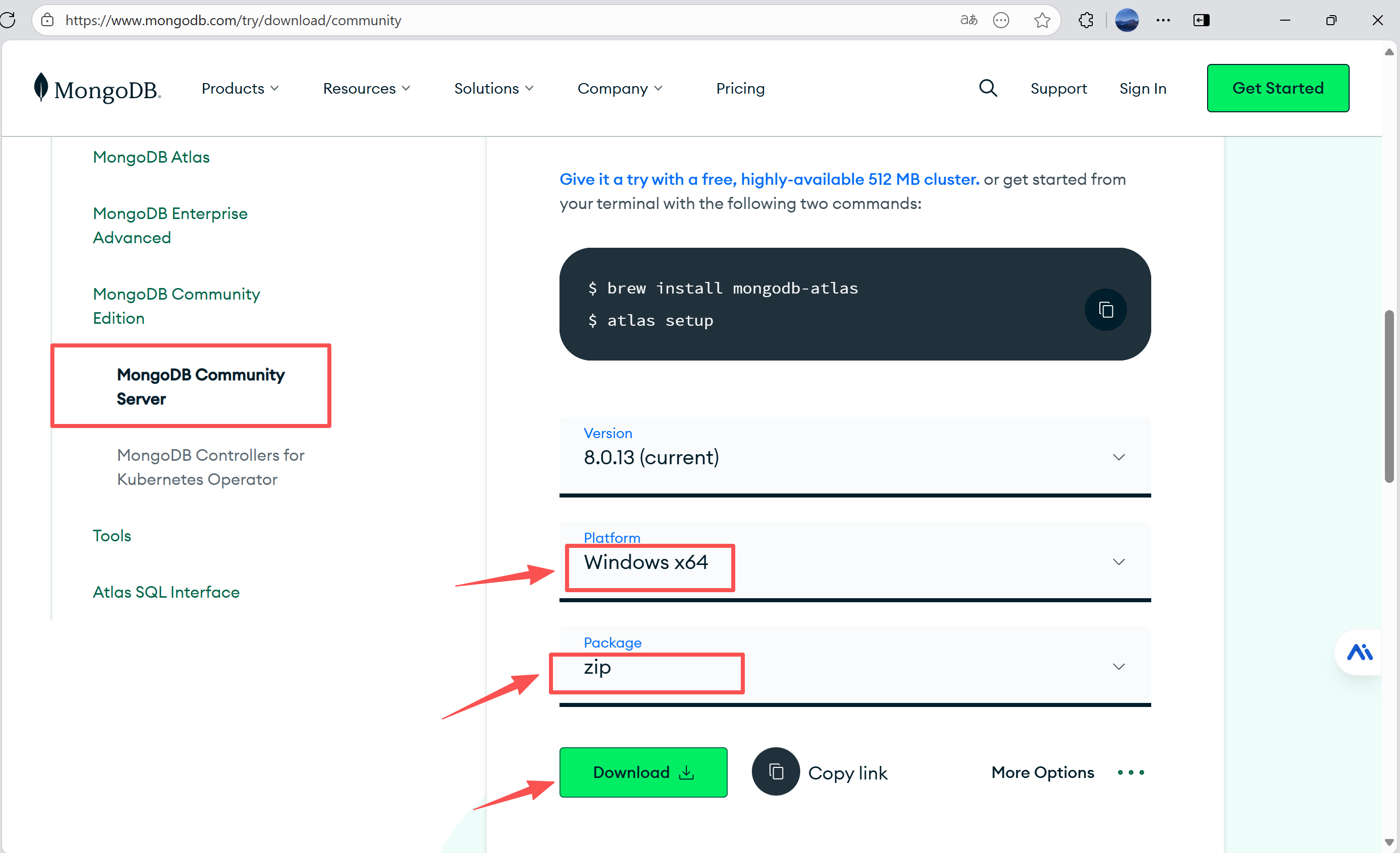 在 Windows 平台下,MongoDB 提供了两种安装形式: