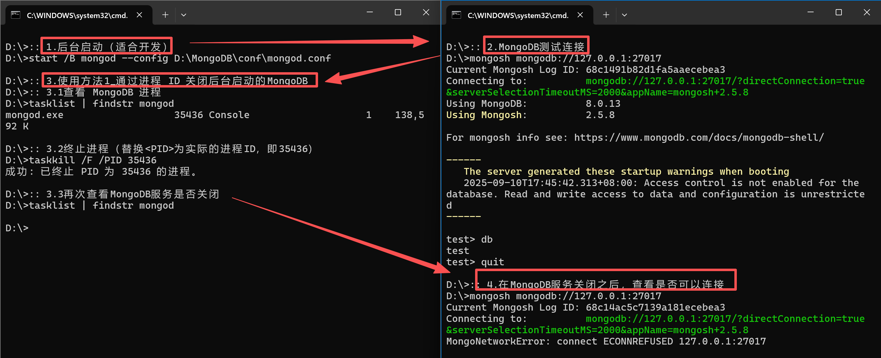 └── mongosh.exe # MongoDB Shell(单独下载)