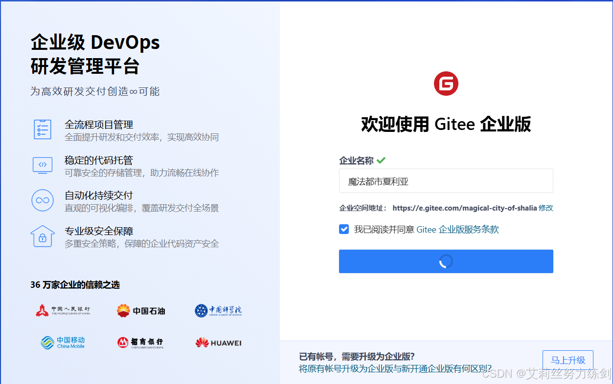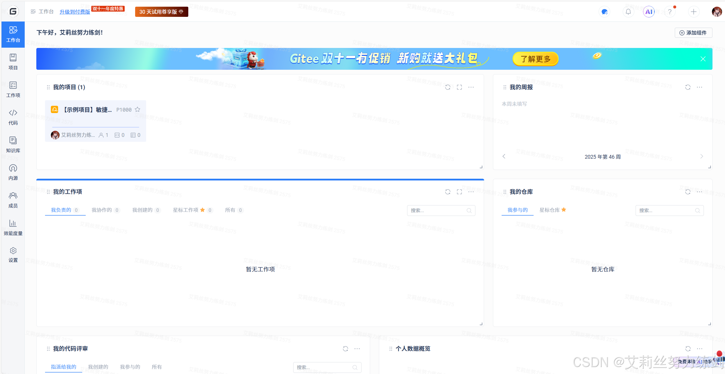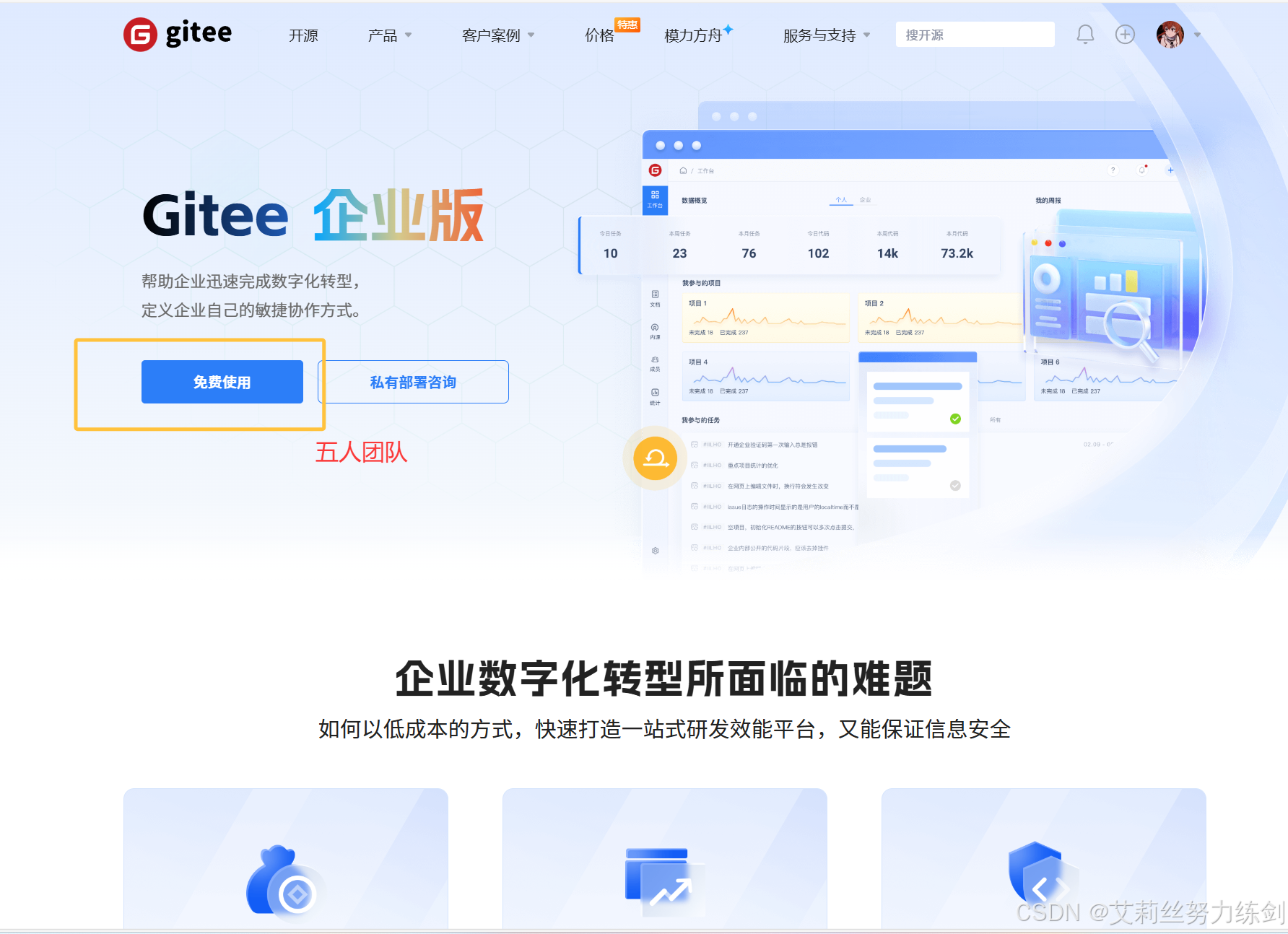 因为是Gitee企业级免费版平台,所以只能容纳5个人之内的协作。