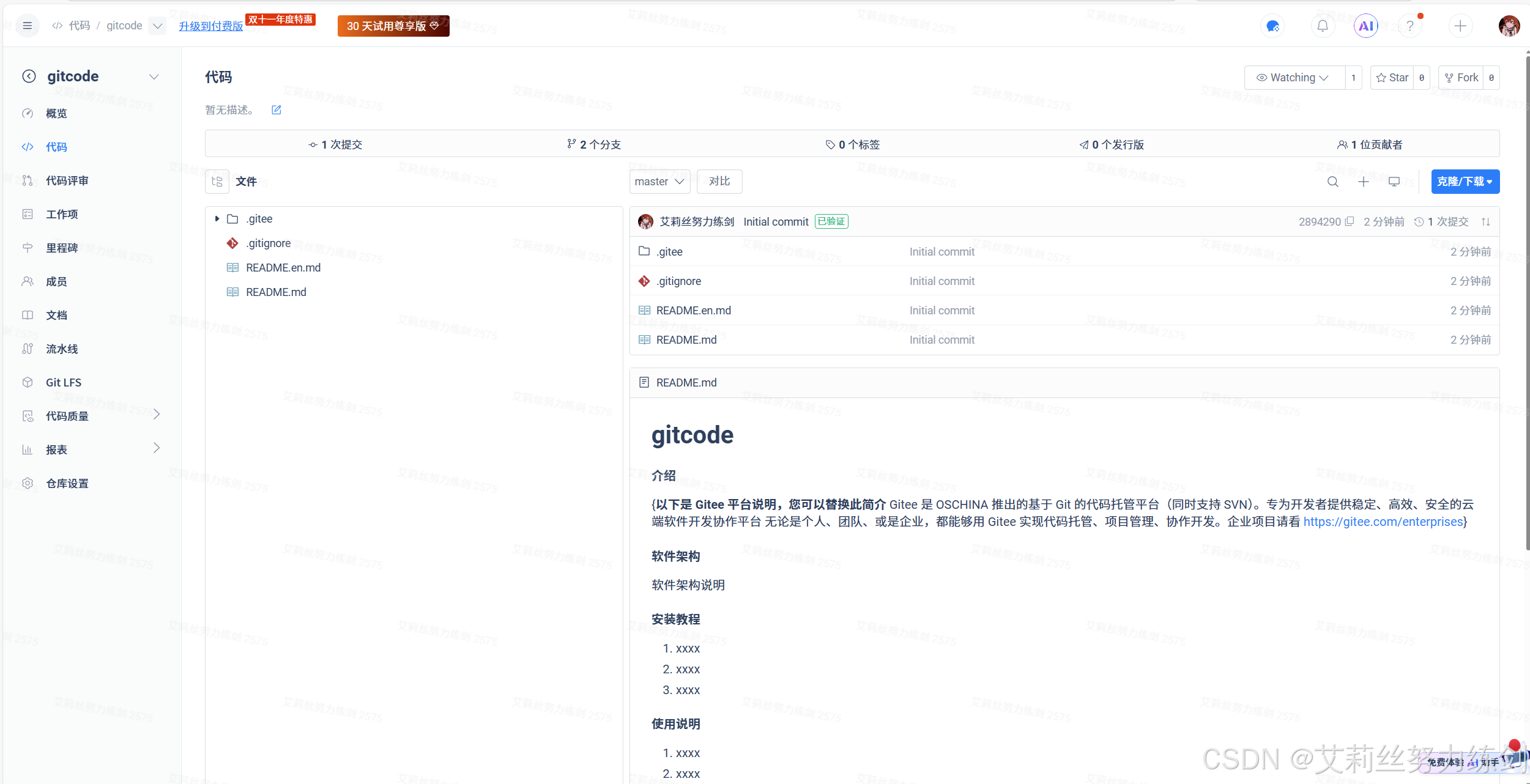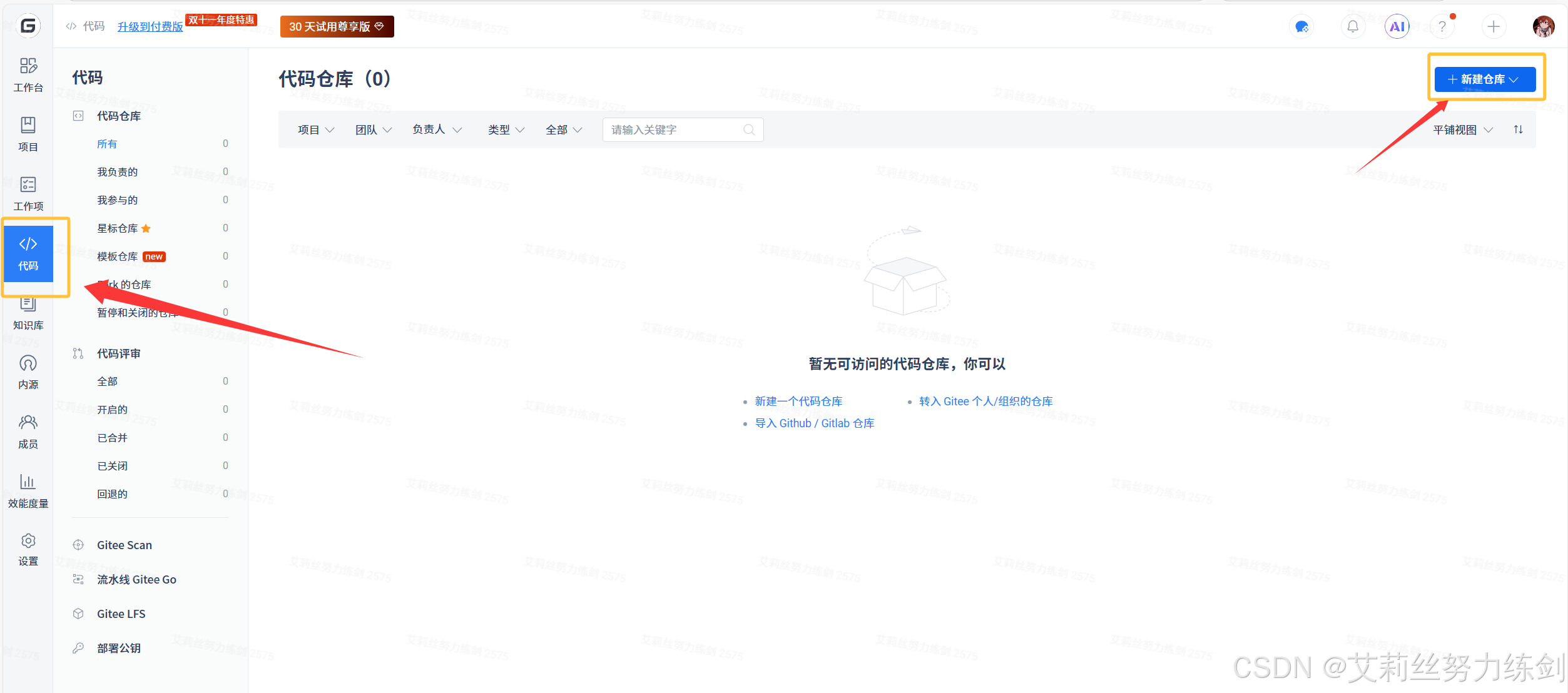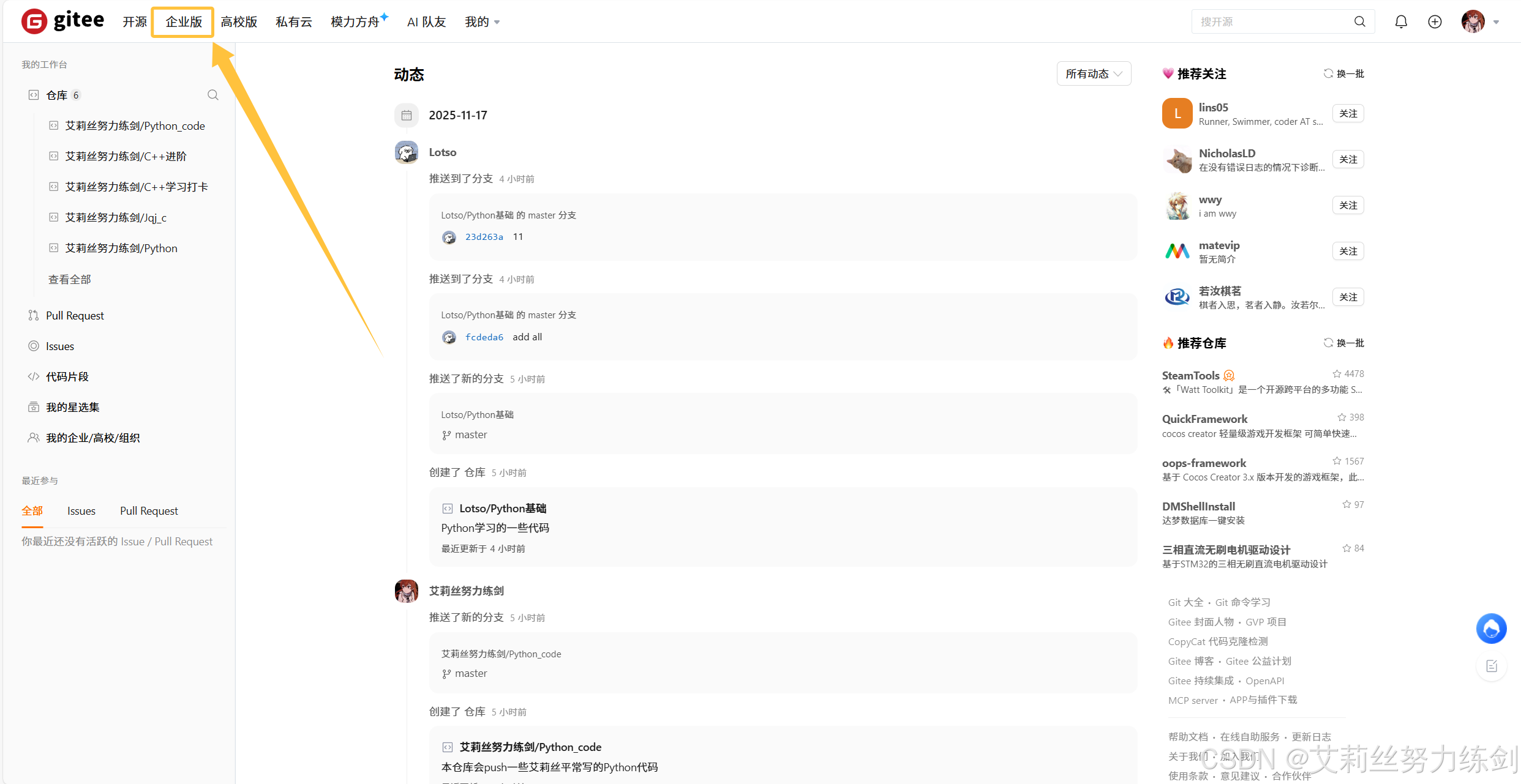 因为是Gitee企业级免费版平台,所以只能容纳5个人之内的协作。