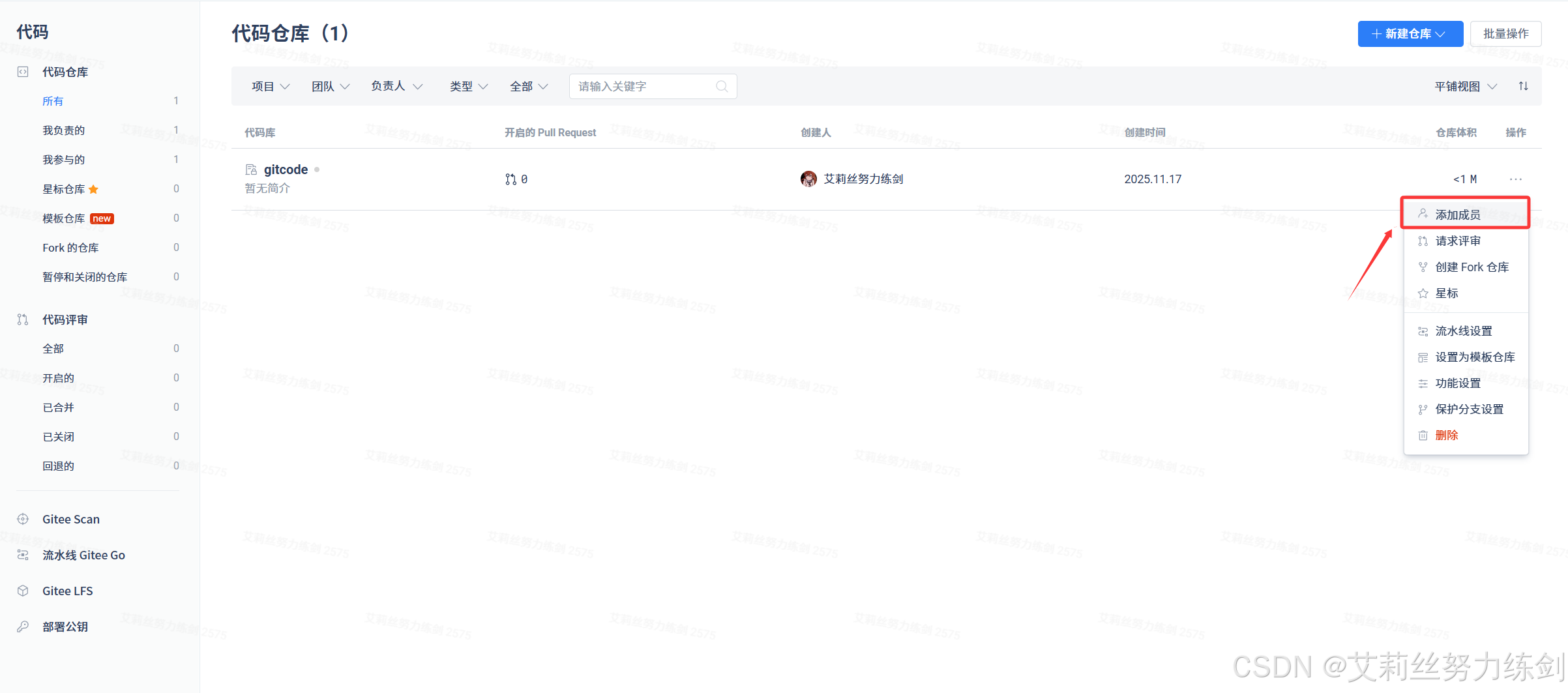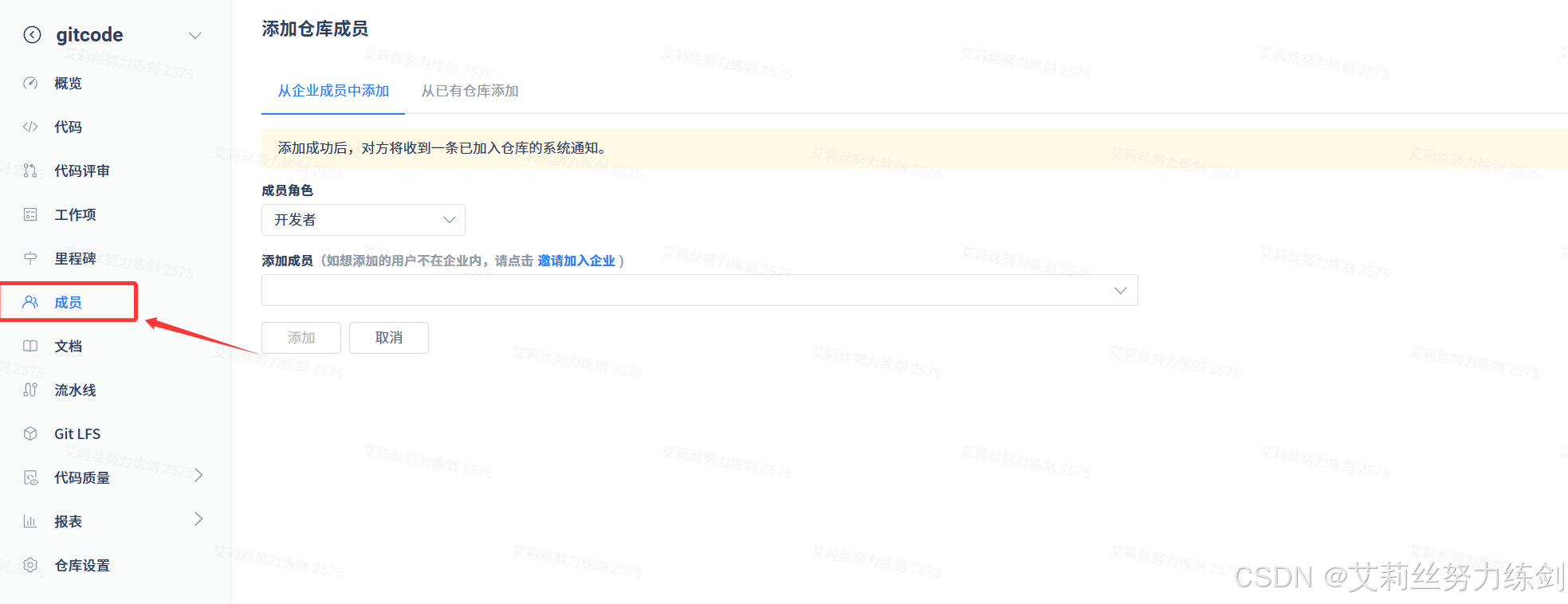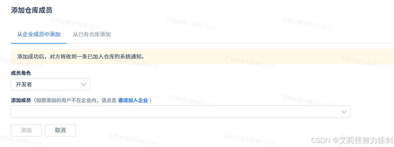 4.4.4 项目成员添加完之后:添加仓库开发人员