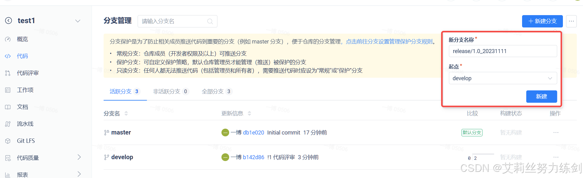 (2)命名以release/开头,建议的命名规则:release/version_publishtime;