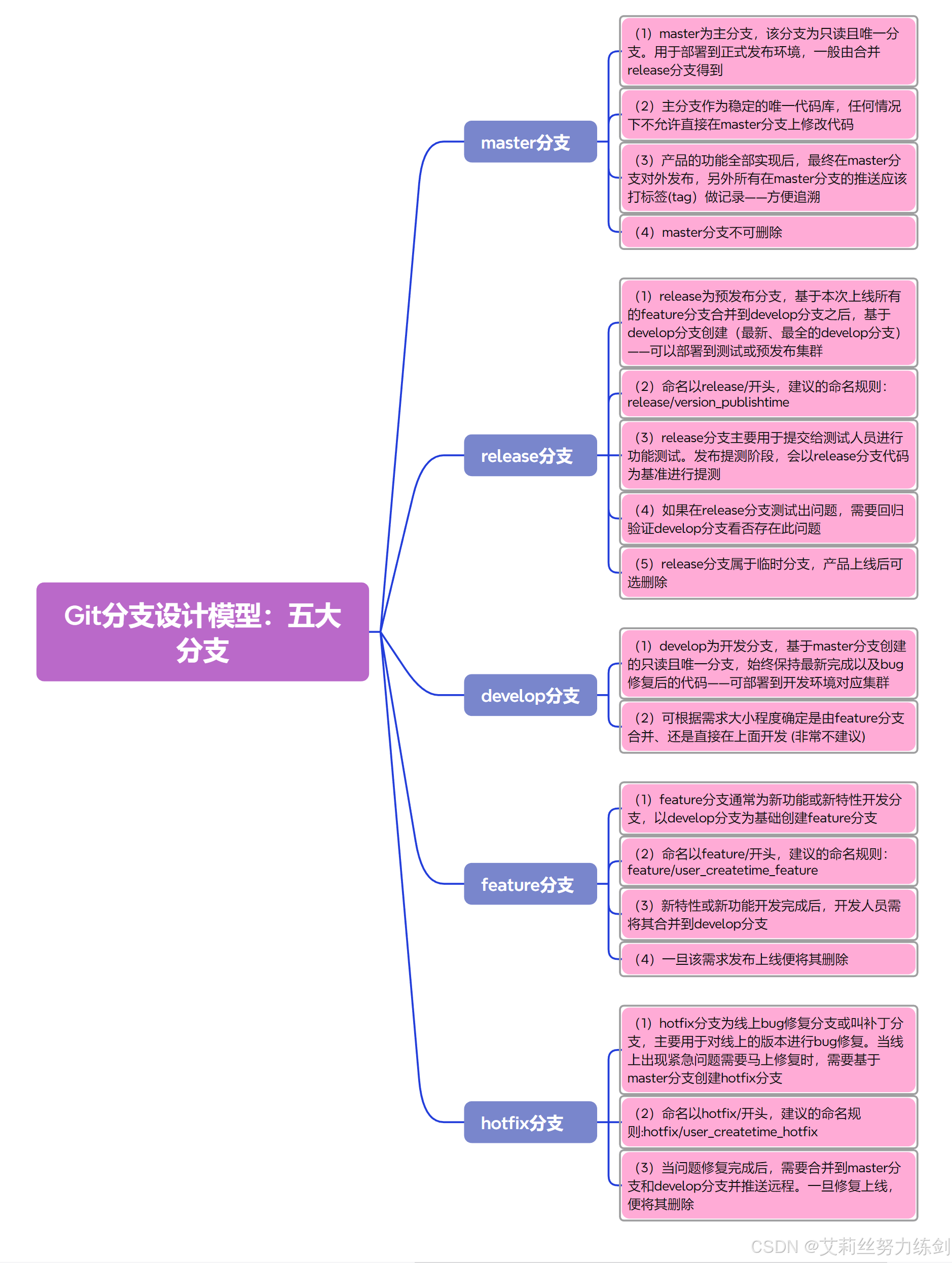 (1)master为主分支,该分支为只读且唯一分支。用于部署到正式发布环境,一般由合并release分支得到;