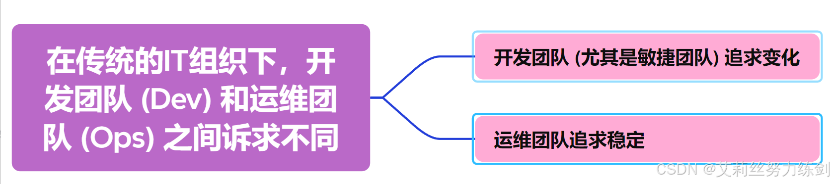 在传统的IT组织下,开发团队 (Dev) 和运维团队 (Ops) 之间诉求不同: