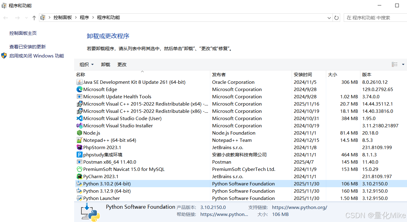 1、打开控制面板>> 删除程序,找到Python,右键点击更改,点击Repair (Uninstall的上一个选项);