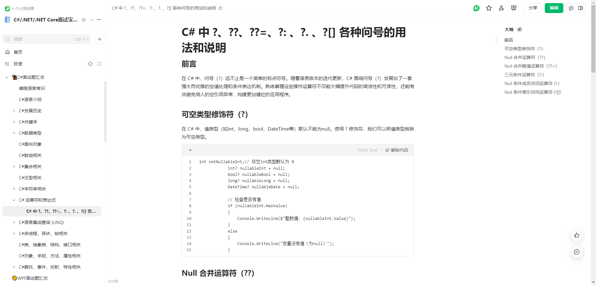 在 C# 中,问号(?)远不止是一个简单的标点符号。随着语言版本的迭代更新,C# 围绕问号(?)发展出了一套强大而优雅的空值处理和条件表达机制。熟练掌握这些操作运算符不仅能大幅提升代码的简洁性和可读性,还能有效避免恼人的空引用异常,构建更加健壮的应用程序。