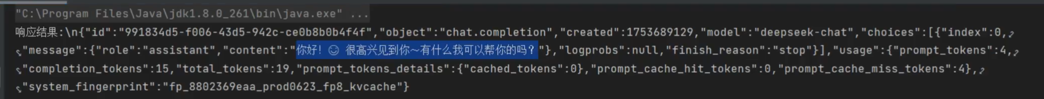 只要把第18行代码的"你好",改成自己问的东西,就可以和得到deepseek对应的回答了。