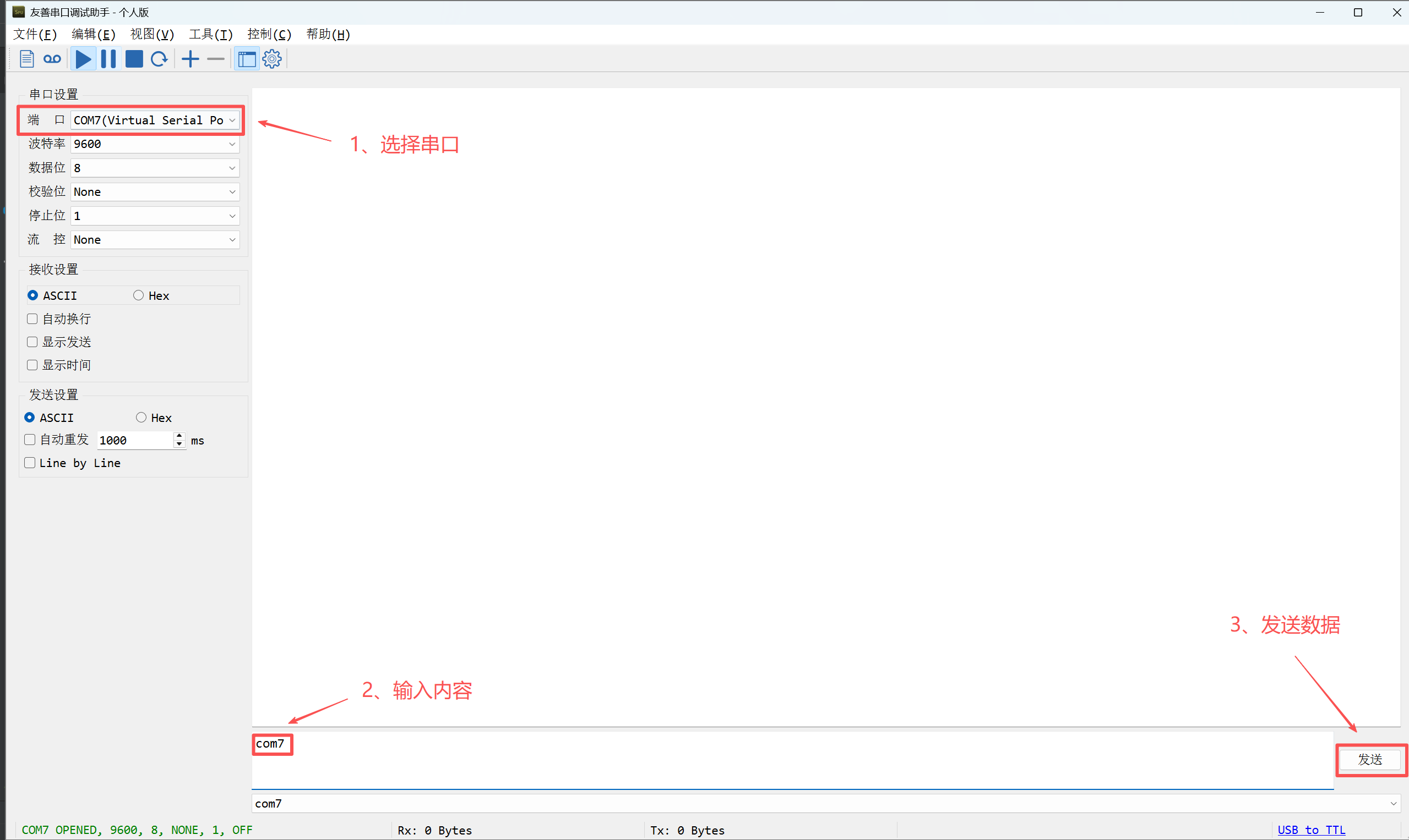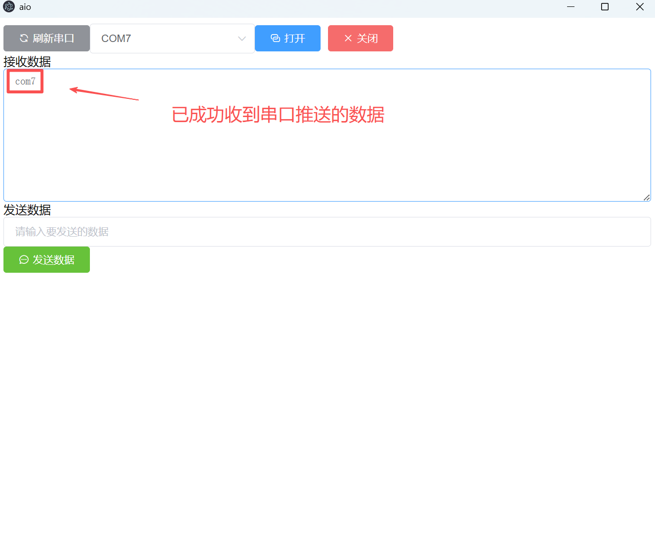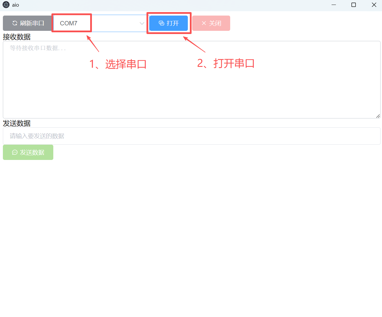 项目启动成功以后选择一个串口,这里我选择的是COM7,然后直接打开。