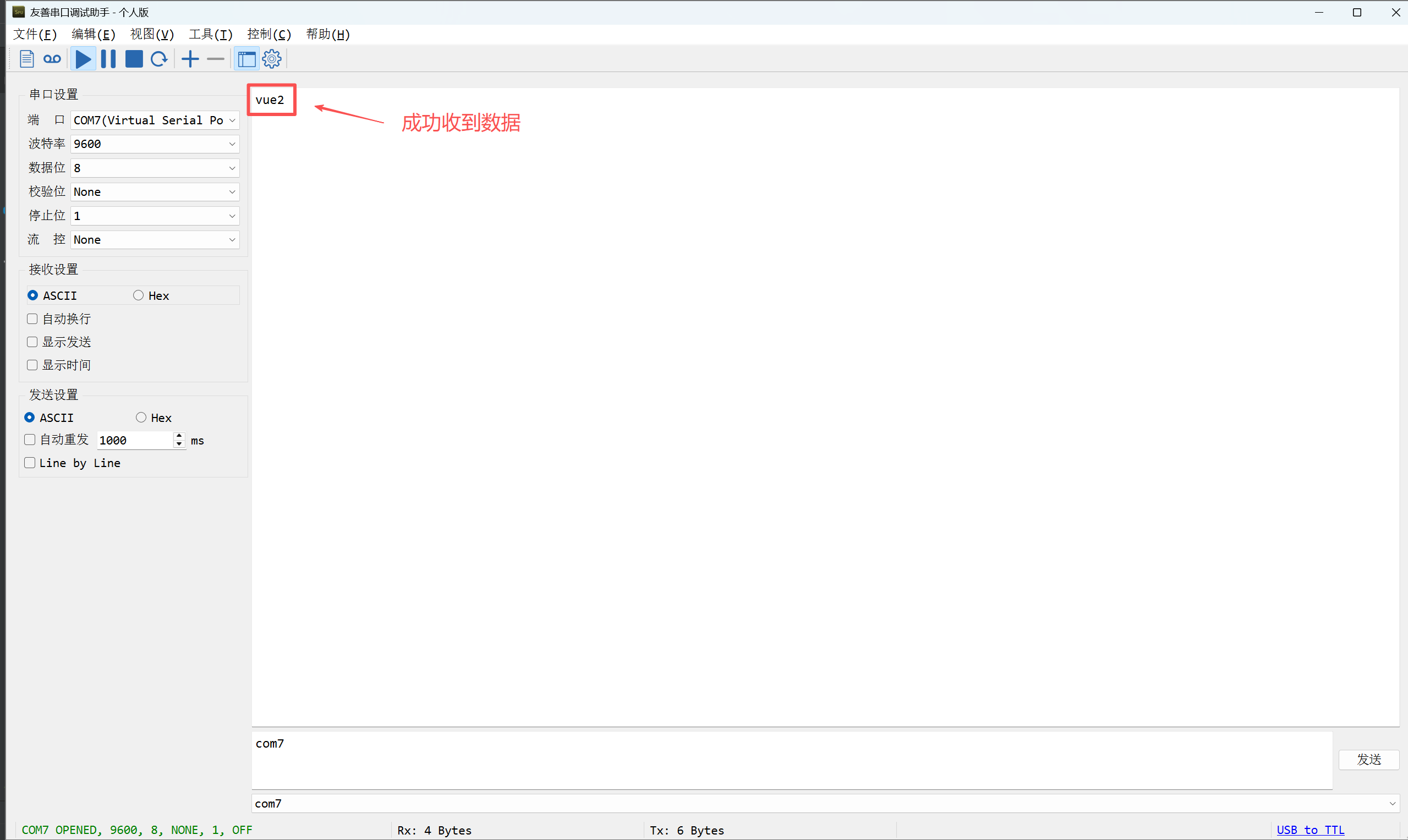 这里我使用的软件是【Serial Port Utility】,我模拟了串口推送一条数据到我们应用上