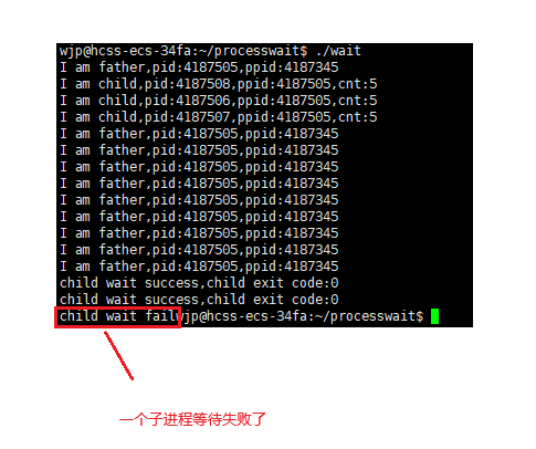 可以明显发现一个子进程等待失败了。