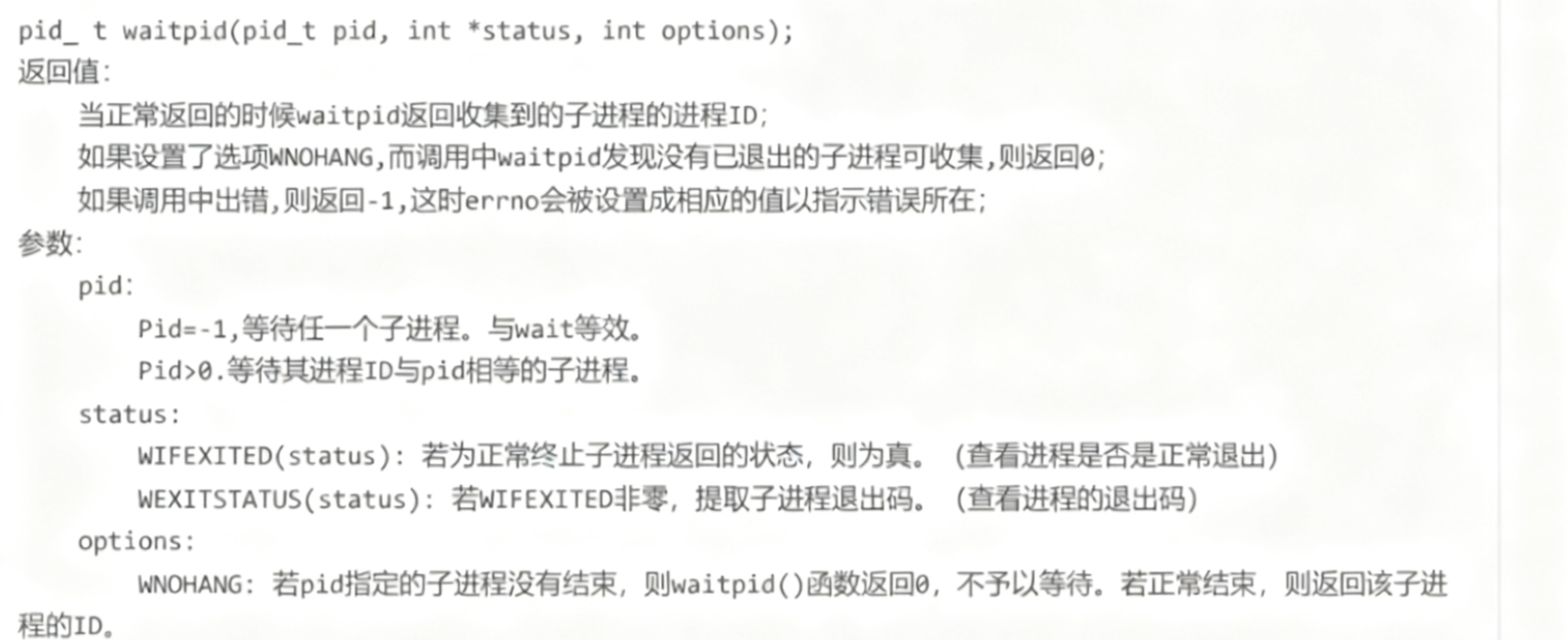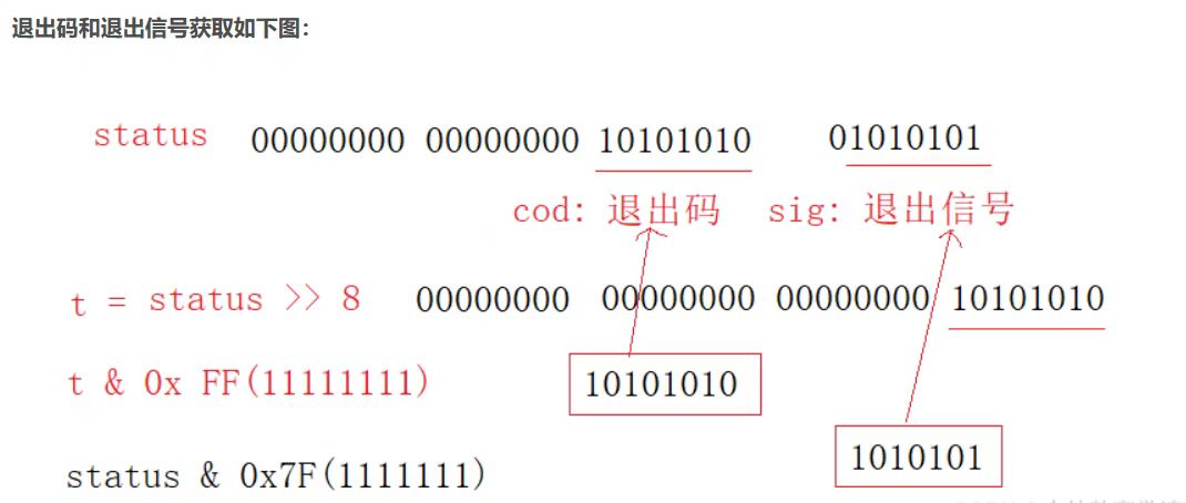 WEXITSTATUS(status): 如果WIFEXITED(status)非零,提取子进程退出码。