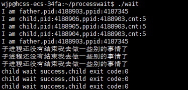 62 printf("child wait success,child exit code:%d\n",WEXITSTATUS(statu));