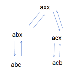 输出这个字符串的所有排列方式,每行一个排列。要求字母序比较小的排列在前面。