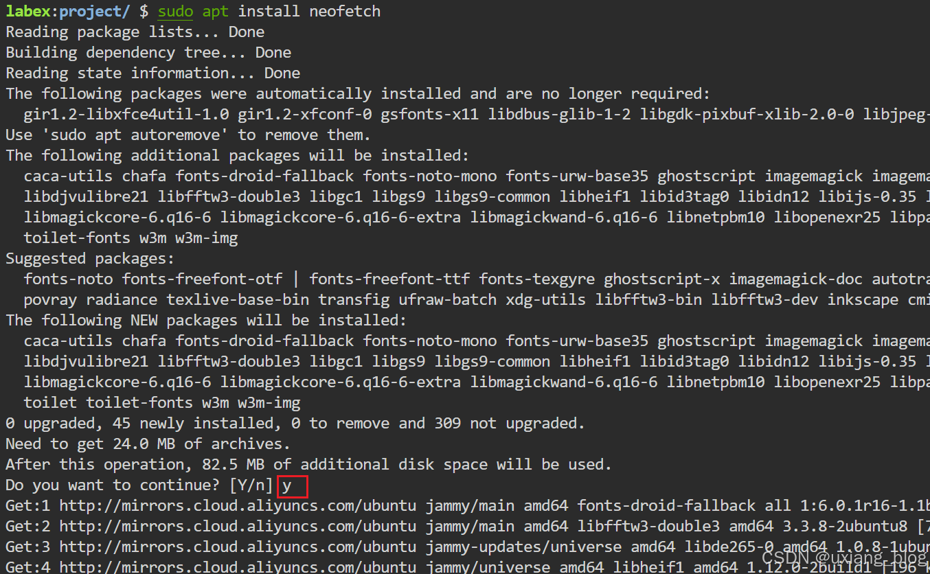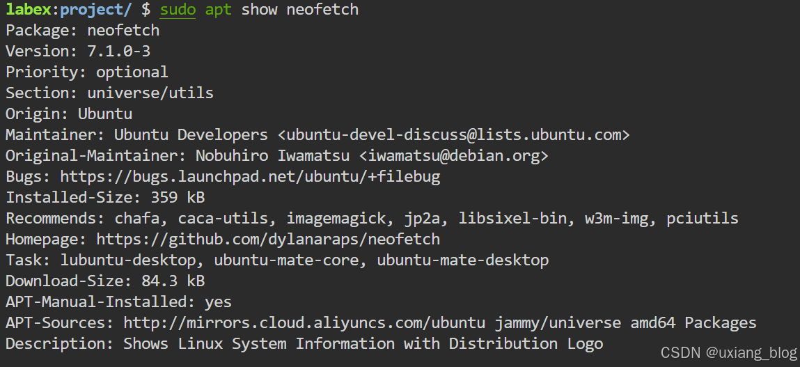 软件包列表已更新完毕,现在是时候满足开发团队的需求了。他们需要neofetch一个便捷的命令行工具,能够以美观的方式显示系统信息。你的任务就是安装它。