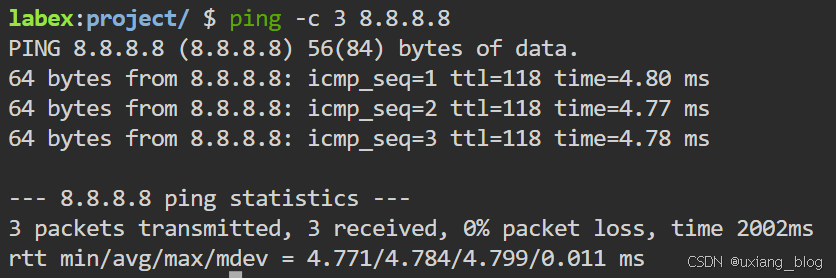 通过向 Google 的公共 DNS 服务器发送3 个ICMP 数据包来测试服务器与互联网的连接8.8.8.8。
