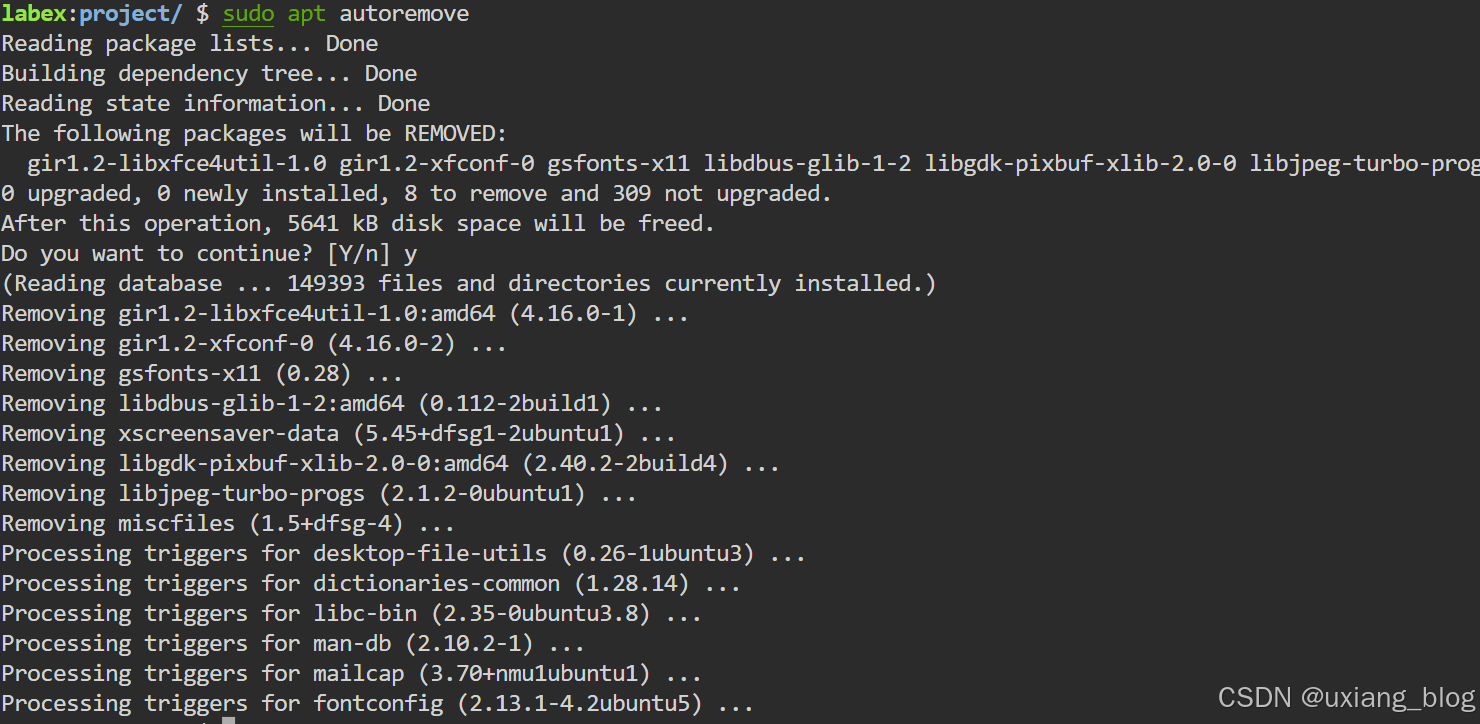 移除软件包后,最好也清理掉所有不必要的依赖项,方法如下: