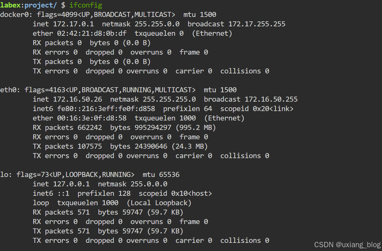 eth0: flags=4163<UP,BROADCAST,RUNNING,MULTICAST> mtu 1500