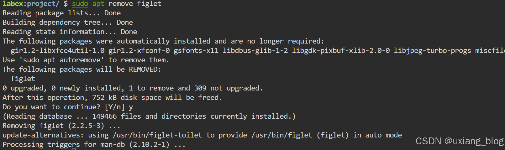 补充知识:您可以figlet使用该命令卸载sudo apt remove figlet。