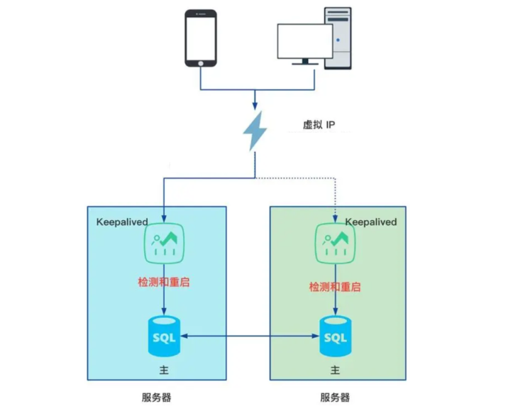 - 搭建双主双活(Active-Active)MySQL 集群架构,解决单点故障问题,实现故障自动转移,保障服务连续性。