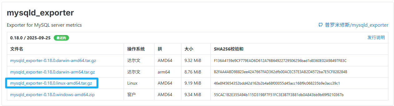 | 监控体系 | mysqld_exporter-0.18.0 + Prometheus-3.5.0 + Grafana-enterprise-11.1.2 | 指标采集、时序数据存储、可视化展示全流程覆盖 |