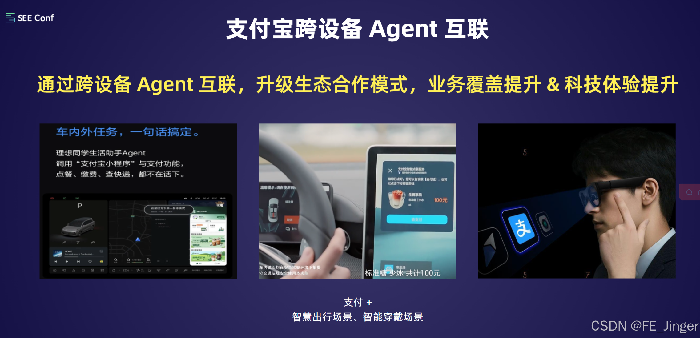 - 智能车机:语音下达点餐、缴费、查快递指令,调用支付宝小程序与支付功能;