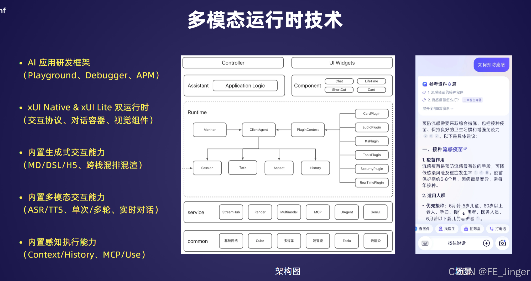 - 内置生成式交互能力:支持MD/DSL/H5跨栈混排混渲;