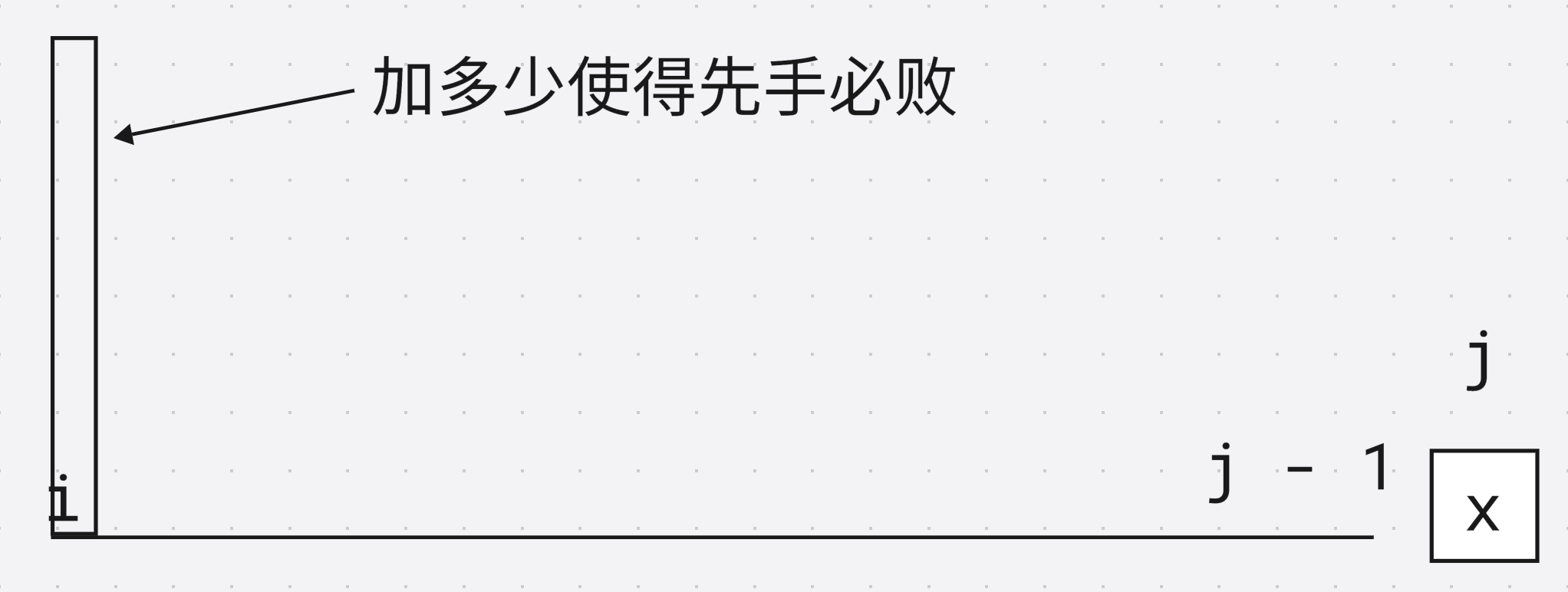 - 定义 L L L为左边放多少加上 [ i , j − 1 ] [i, j - 1] [i,j−1]是必败态