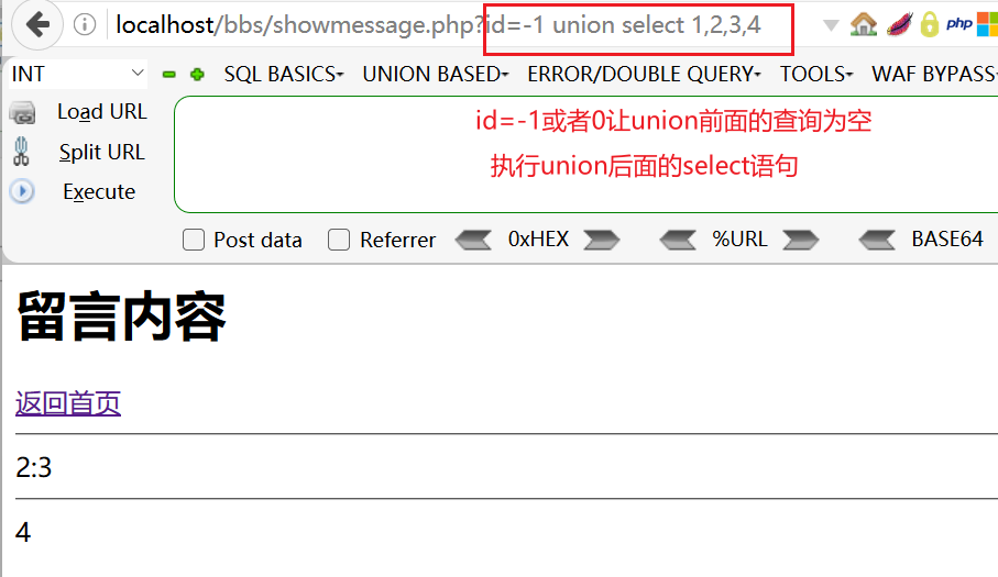 id=-1是让正确的语句不要干扰注入的语句导致union后面的语句无法显示。