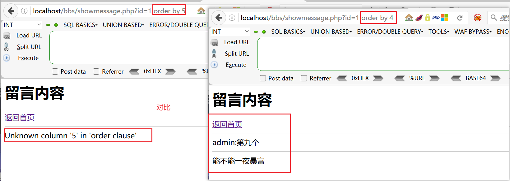 (3)使用order by X 确定列数。如图所示,在进行order by 4时页面显示正常,order by 5报错,那么就说明列数为4。这需要自己测试