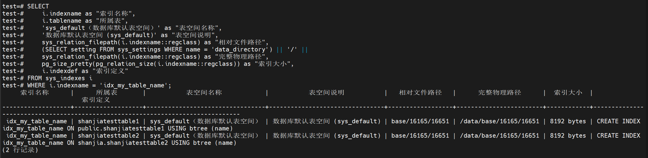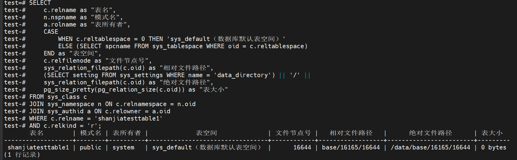 WHEN c.reltablespace = 0 THEN 'sys_default(数据库默认表空间)'