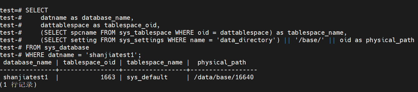 (SELECT setting FROM sys_settings WHERE name ='data_directory') ||'/base/'|| oid as physical_path
