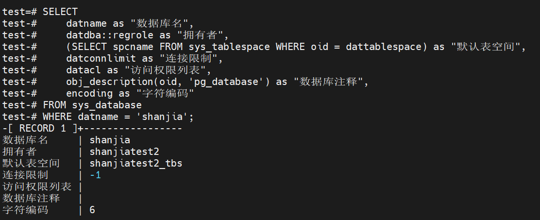 SELECT EXISTS(SELECT 1 FROM sys_database WHERE datname = 'shanjia') INTO database_exists;