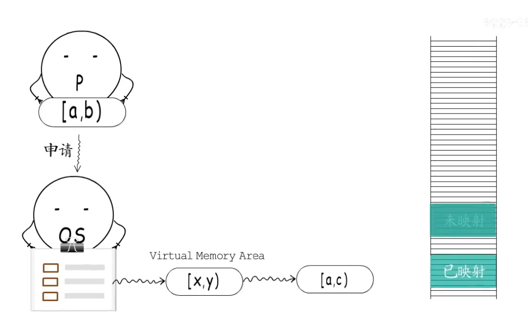 为什么页表存储的地址中有一位用于标识该物理内存页是否已经映射?因为进程向操作系统申请映射内存时,通常不会一申请就立马分配,操作系统会先记个账,例如Linux中通过进程对应的task_struct可以找到记录内存分配的链表,每个链表项都是一个VMA结构体,里面记录着该进程已经申请的一段连续内存地址区间,例如进程申请地址区间a到b这段内存,它的VMA链表就会增加一项或者对相邻区间进行扩张。标记上地址区间a到b已经申请了,但是真正的映射要到进程访问这段内存时才会进行。