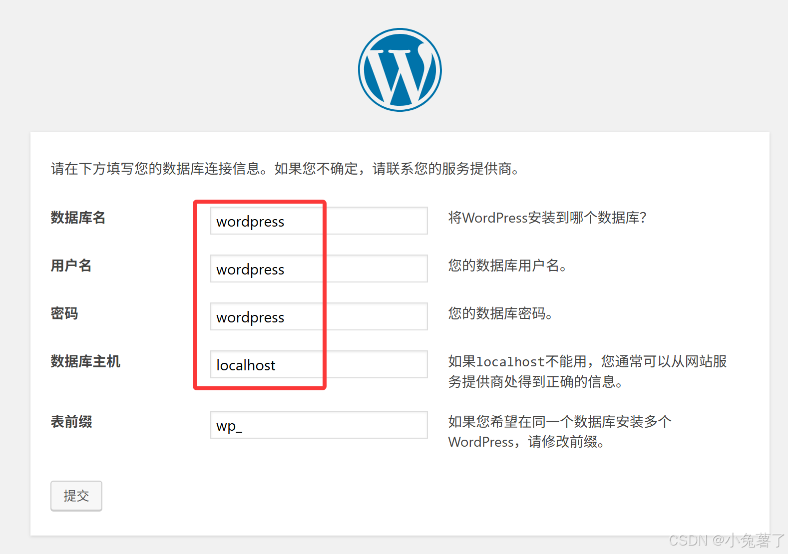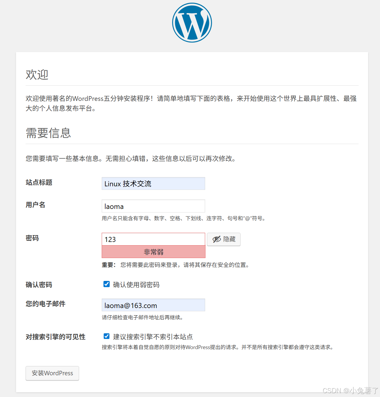 #为 WordPress 创建独立的数据库和用户,遵循最小权限原则,提高安全性。