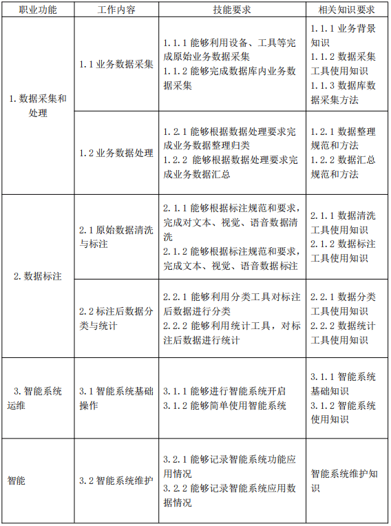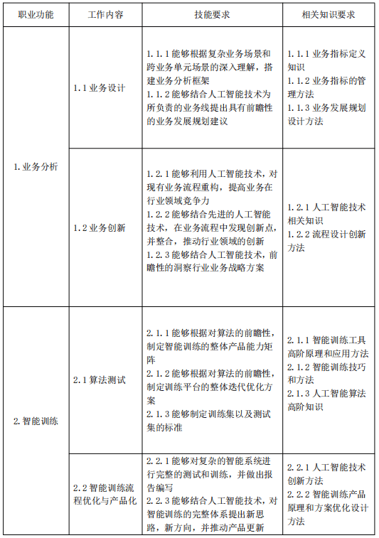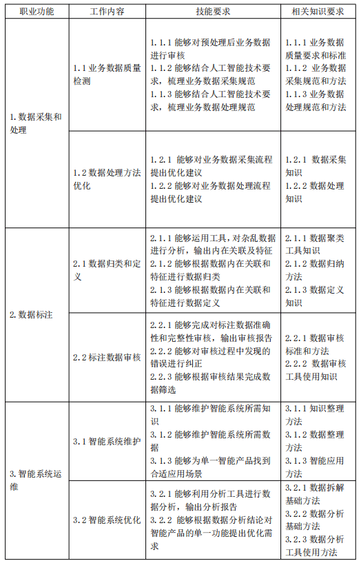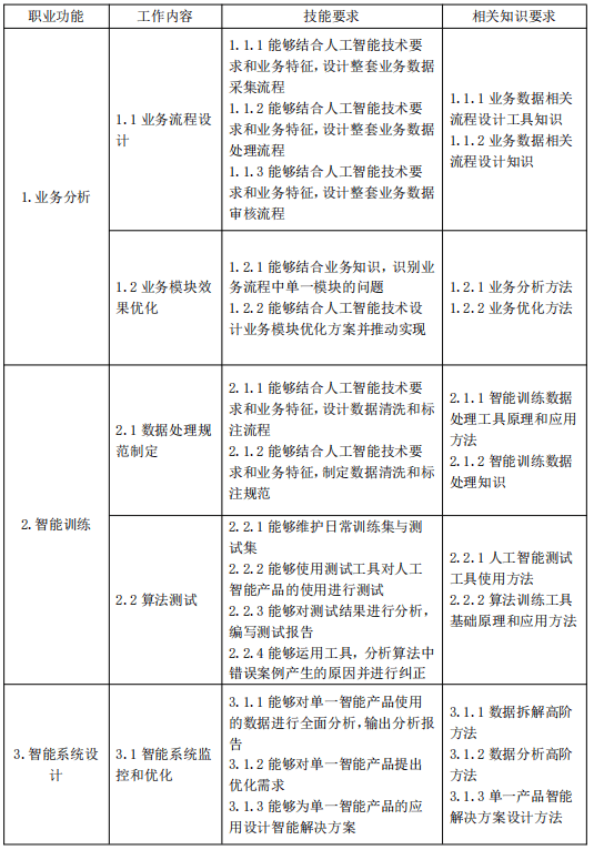 为了规范人工智能训练师的职业发展,提升人才培养质量,国家颁布了《人工智能训练师国家职业技能标准》。该标准为五级工的能力培养提供了明确的指导框架,从技能要求到知识储备,从操作规范到法规意识,都进行了详细的界定。