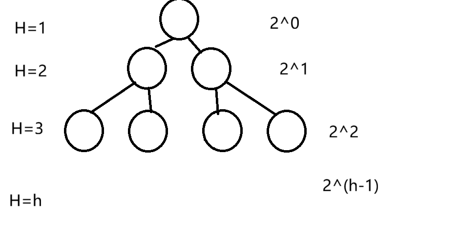 T= 2^(h-2)*1 + 2^(h-3)*2......2^1*(h-2)+2^0*(h-1)