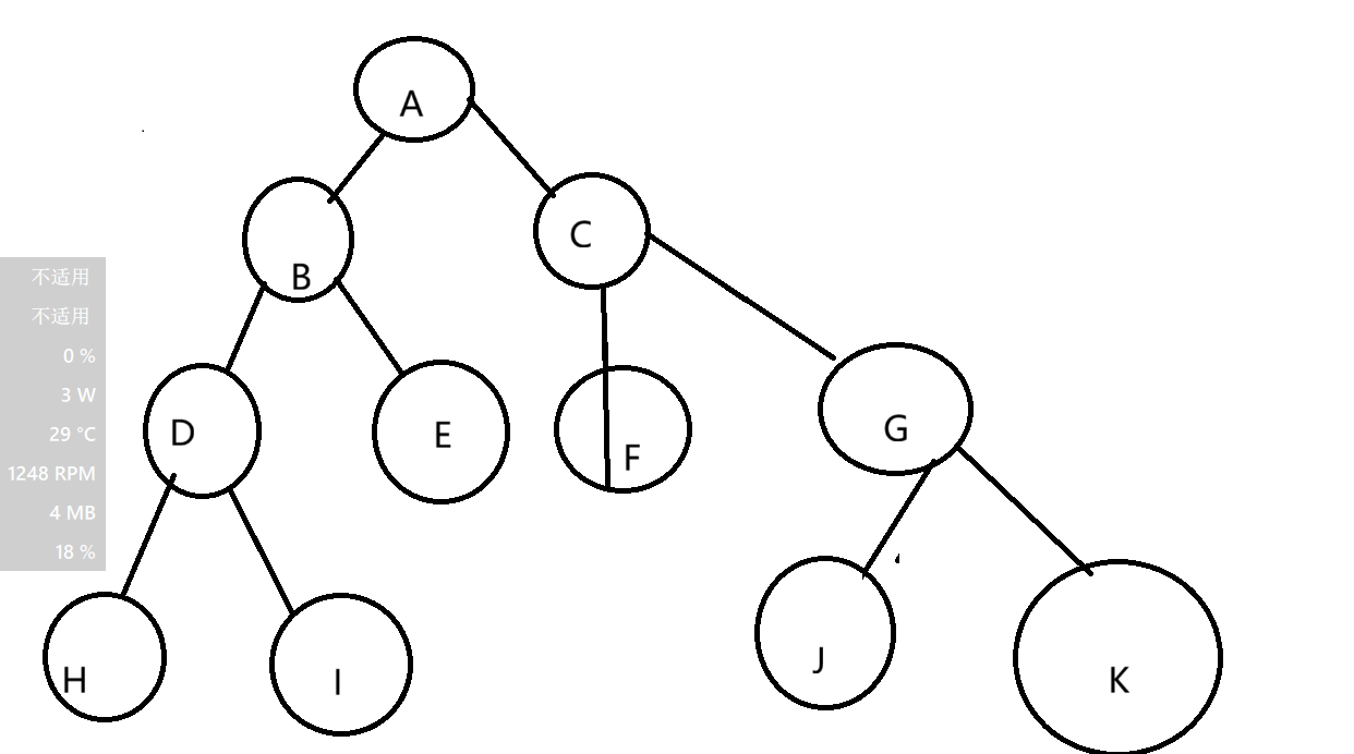叶节点||终端节点,是最末端的节点如H,I,E,F,J,K;