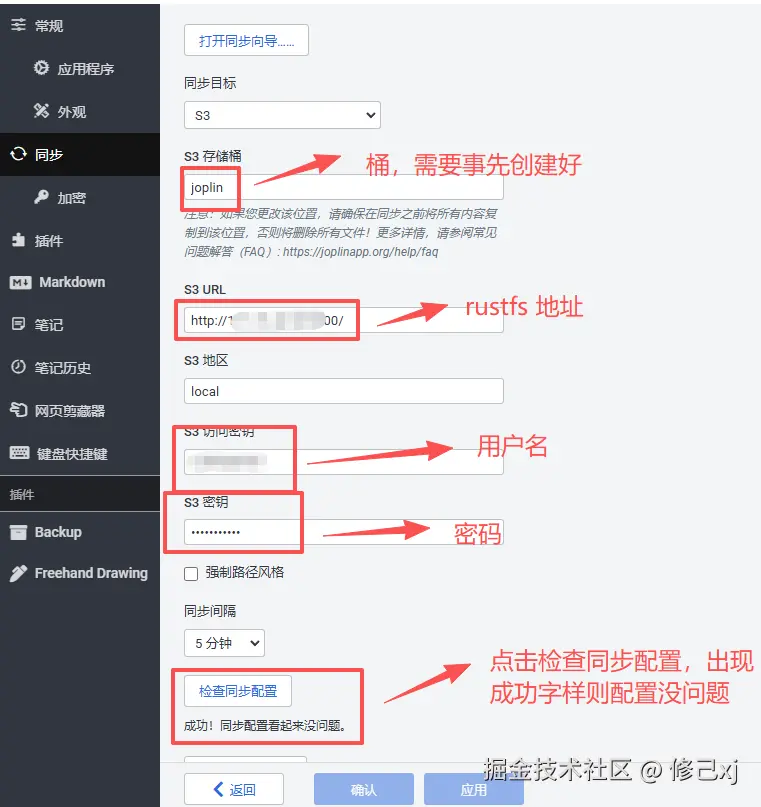 访问Joplin官网(joplinapp.org)即可下载适合你设备的版本。安装过程简单直观,几分钟内即可开始记录。我在这块下载的是windows 和安卓apk 两各平台的版本。下载安装的的过程都比较简单,我因为之前在公网服务器上部署过 rustfs ,我们此处也采用的是rustfs 同步多端数据,如果你有其他兼容s3协议的oss,如minio等,也可以试用,其他oneDrive、nextCloud等网盘也可做为同步工具试用。我们此处展示下如何用rustfs配置,对rustfs感兴趣的家人们也可以翻一下博主介绍rustfs部署的历史文章。