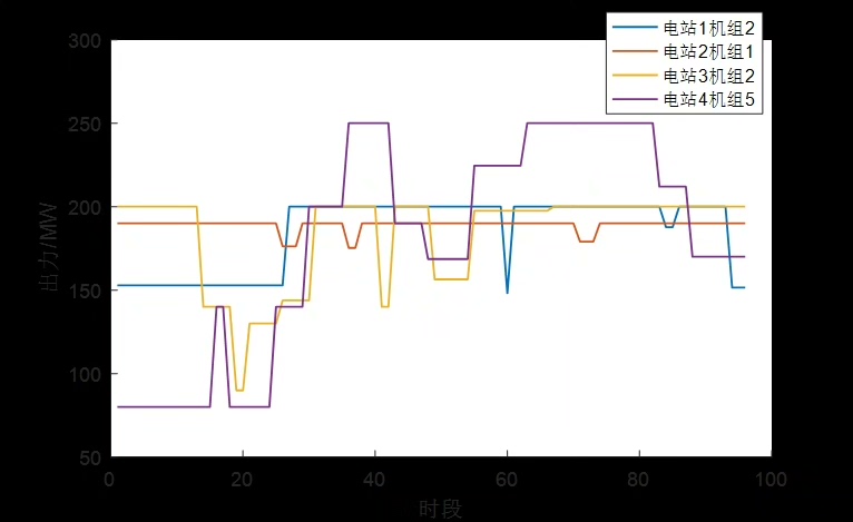 这里用shutdown_flag记录停机标志,防止机组频繁启停。这种约束写法虽然暴力,但胜在直观,像在说:"你要关机?行,但得先满足我的条件!"