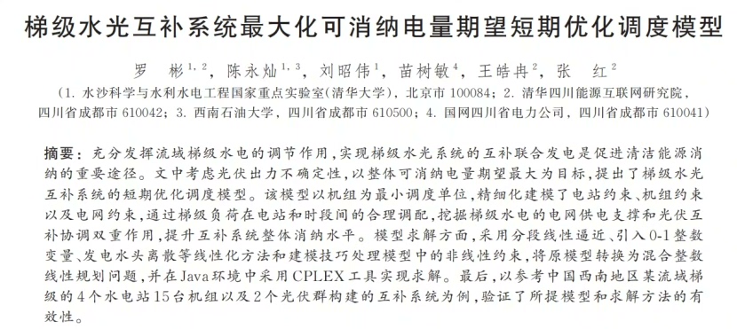 1023-(文章复现)梯级水光互补系统最大化可消纳电量期望短期优化调度模型matlab代码 参考资料《梯级水光互补系统最大化可消纳电量期望短期优化调度模型》 文中考虑光伏出力不确定性,以整体可消纳电量期望最大为目标,提出了梯级水光互补系统的短期优化调度模型。 模型求解方面,采用分段线性逼近、引入0-1整数变量、发电水头离散等线性化方法和建模技巧处理模型中的非线性约束,将原模型转换为混合整数线性规划问题。 使用matlab+yalmip+cplex求解器实现 代码逻辑清晰,注释详细 本资源包含对文献的详细解读以及完整matlab代码复现 邮箱,后请及时给出邮箱。