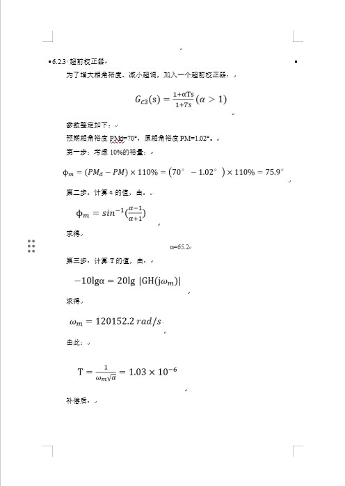 为了消除稳态误差并提高系统的动态响应,我们需要设计一个补偿器。常用的补偿器有PI控制器和PID控制器。这里我们选择PI控制器,因为它可以消除稳态误差。
