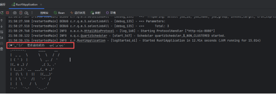 (2) 控制台显示 "若依启动成功",则表示后端服务已经成功启动: