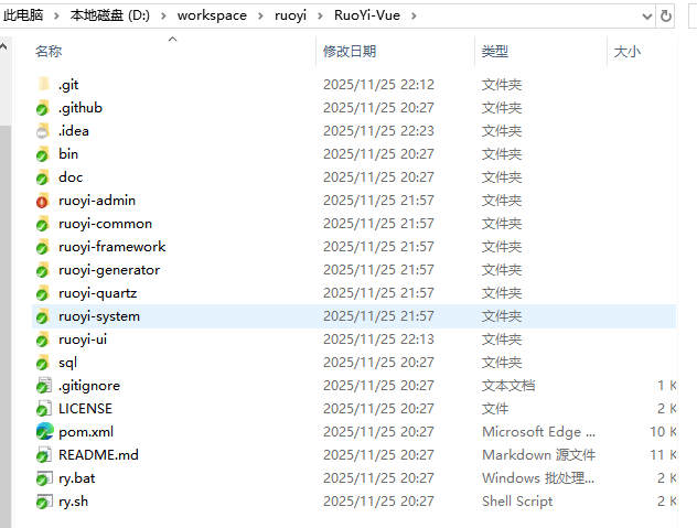 (5) 按照 application.yml 文件中的配置,需要在D盘新建一个文件上传目录:D:/ruoyi/uploadPath