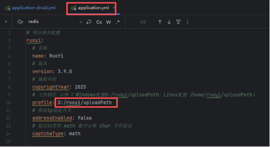 **application.yml 位置:**ruoyi-admin/src/main/resources/application.yml