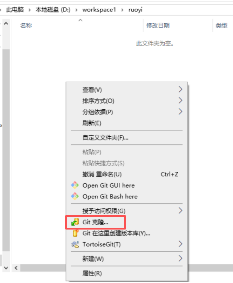 - 进入要存放代码的文件夹,右键-->Git克隆: